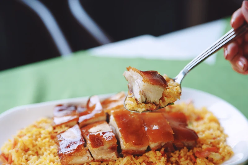 另一道「乳豬飯」外皮酥脆油亮非常上鏡,乳豬肉相當鮮嫩,編一口鍾情,下面的金黃色炒飯有加入乳豬汁和香料,搭配乳豬非常和諧,原來加路餐廳的老闆Carlos是從小生長於澳門的土生葡萄牙人,從小受媽媽的影響所以熱愛烹飪,讓這裡的每一道葡國菜美味同時保有家常風味。