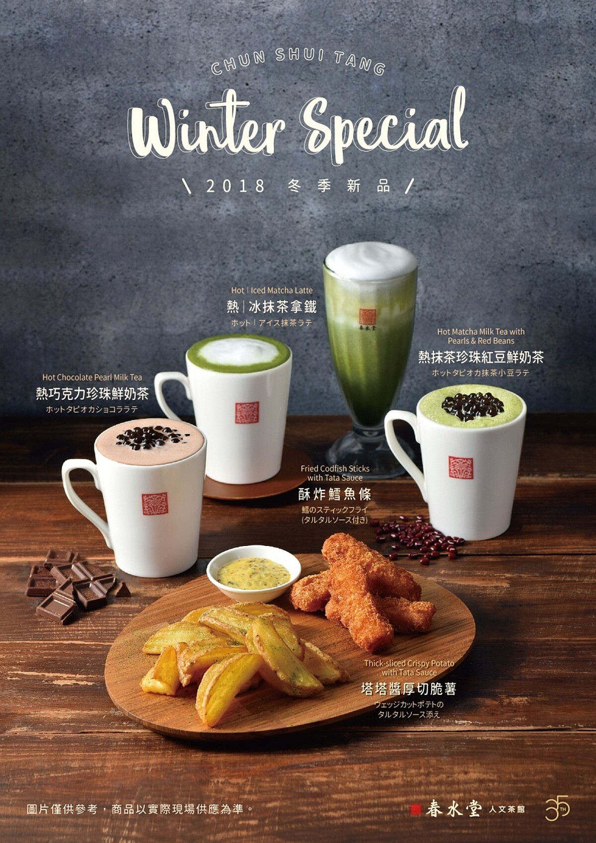 全新的春水堂「熱巧克力珍珠鮮奶茶」將於11月1日開賣,同時還推出「熱/冰抹茶拿鐵」、「熱抹茶珍珠紅豆鮮奶茶」、「酥炸鱈魚條」以及「塔塔醬厚切脆薯」。