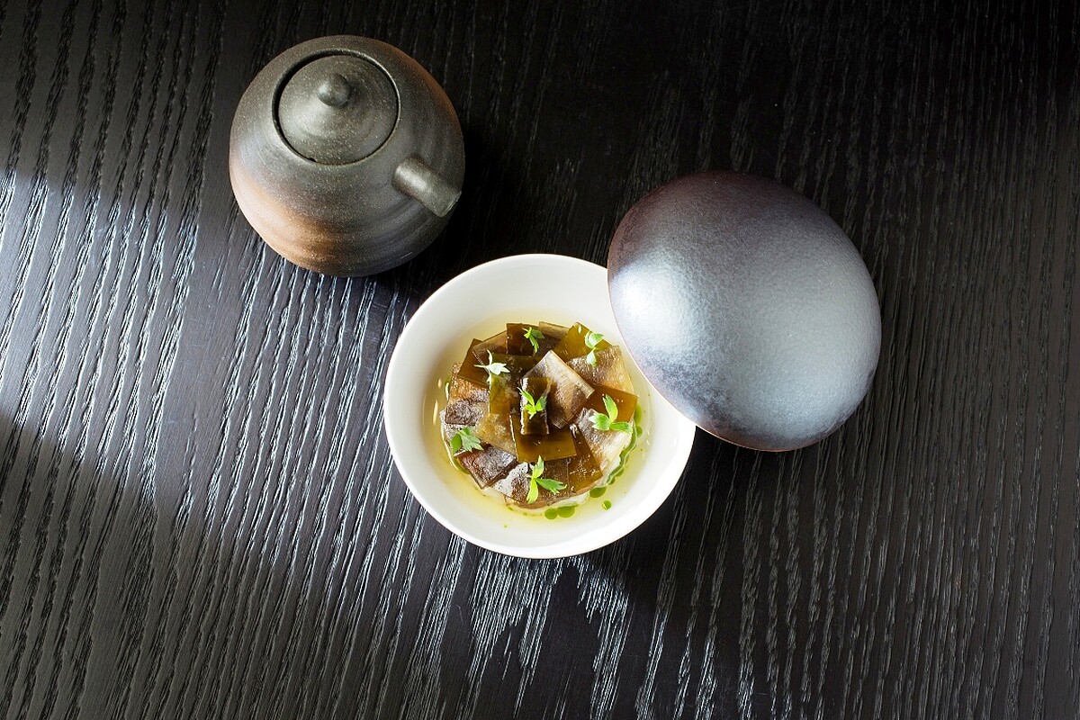 細膩中吃出實習生獨有風格:開胃麵包就很精彩的烤得炙熱飽含香氣水分盛盤,並且附上以稻草煙燻過灑上海鹽的稻香奶油;還有使用昆布與生食級干貝為主食材,將昆布運用在下層干貝丁中,最上層日式醃製白昆布,昆布湯中間夾著香煎干貝及醋製杏鮑菇的開胃菜北海道鮮貝‧白昆布漬,精準的開胃菜有著和風的輕盈爽颯。11/13開幕先提供晚餐,11/17起提供午晚兩個餐期服務。