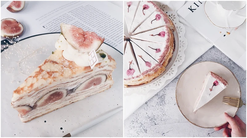 熱賣千層口味包含小山園抹茶、高山烏龍茶、伯爵茶千層,還有季節限定的草莓千層、水蜜桃千層、白乳酪無花果千層。