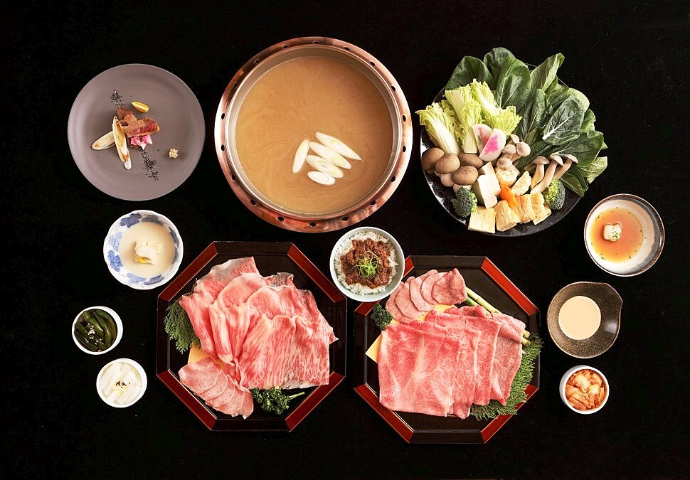 有著一頭牛的招牌牛盤也是大家來此指名賞景景點之一。招牌牛盤,用上久煮仍Q彈的澳洲9+和牛牛舌、口感豐富的牛橫膈膜、大口吃無負擔的低熱量板腱、滷牛筋、日本A5和牛紐約克及肩捲六部位,爽颯的大塊肉片幾乎可以覆蓋鍋面,冷藏能力保鮮夠才敢清涮過湯、保持嫩粉色澤的五分熟馬上起鍋,品嘗到牛肉專屬的滑潤豐腴肉香汁滿。有著優雅京都風庭園造景的樂軒松阪亭,為什麼能讓肉控也可以吃得很優雅,原因就在提供隨桌料理服務專員服務,還有專業清酒師搭餐,都叫人覺得備受寵愛。