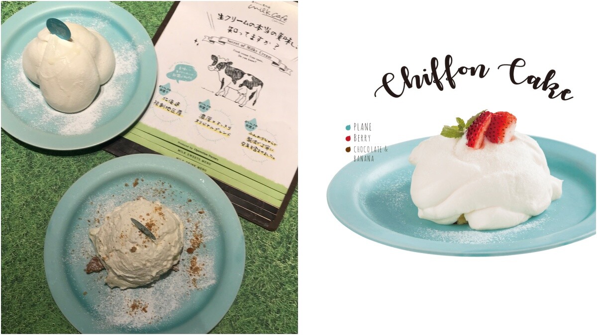 招牌甜點「生奶油戚風蛋糕」是milk最受歡迎的品項,能品嚐到最單純鮮奶油的味道。還有底層是餅乾的「生奶油起司蛋糕」則是另一種