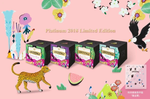 TWININGS唐寧節慶限定鉑金系列茶盒包含薑芒綠茶狂想曲、大吉嶺莊園雙芬茶、胭脂莓果茶、琥珀焦糖博士茶、晨光草原甘菊花茶、夏戀花果綠茶、薄荷圓舞曲茶,即日起已經開始販售。