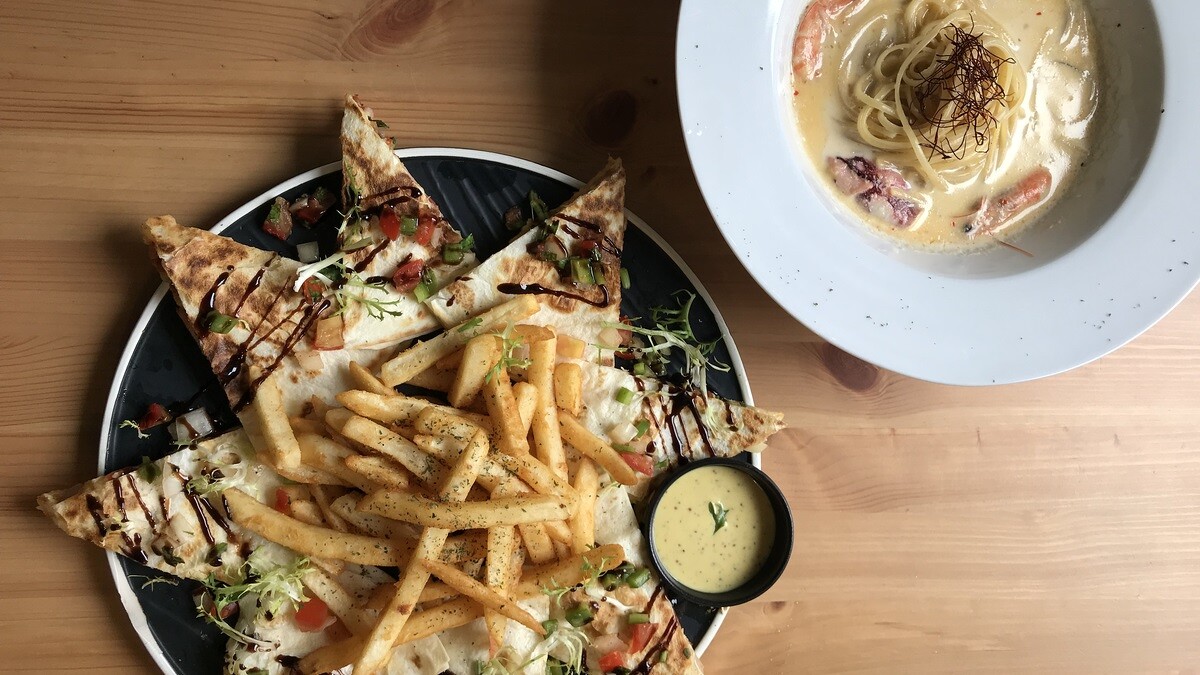 而飲廊入室的餐點更是不能錯過,新推出「辣味豆瓣鮮蝦醬炒義大利麵」以台灣味的豆瓣結合義式料理,帶點微辣的口味,十分過癮。
