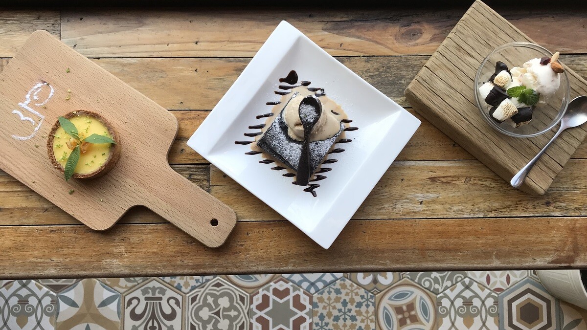甜點的部分也別錯過囉,黑色小甜甜就是所謂的布朗尼,會搭配一球冰淇淋。還有冰冰涼涼的檸檬塔,吃起來清爽不膩口,超適合炎熱的夏季點來品嚐。