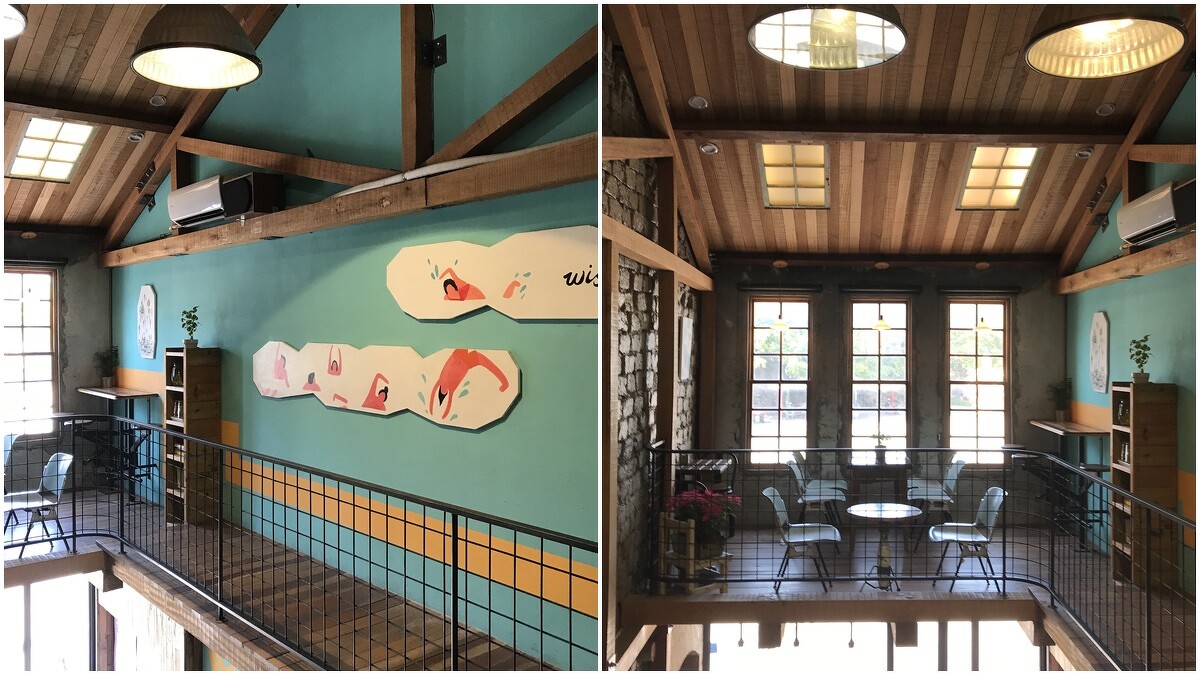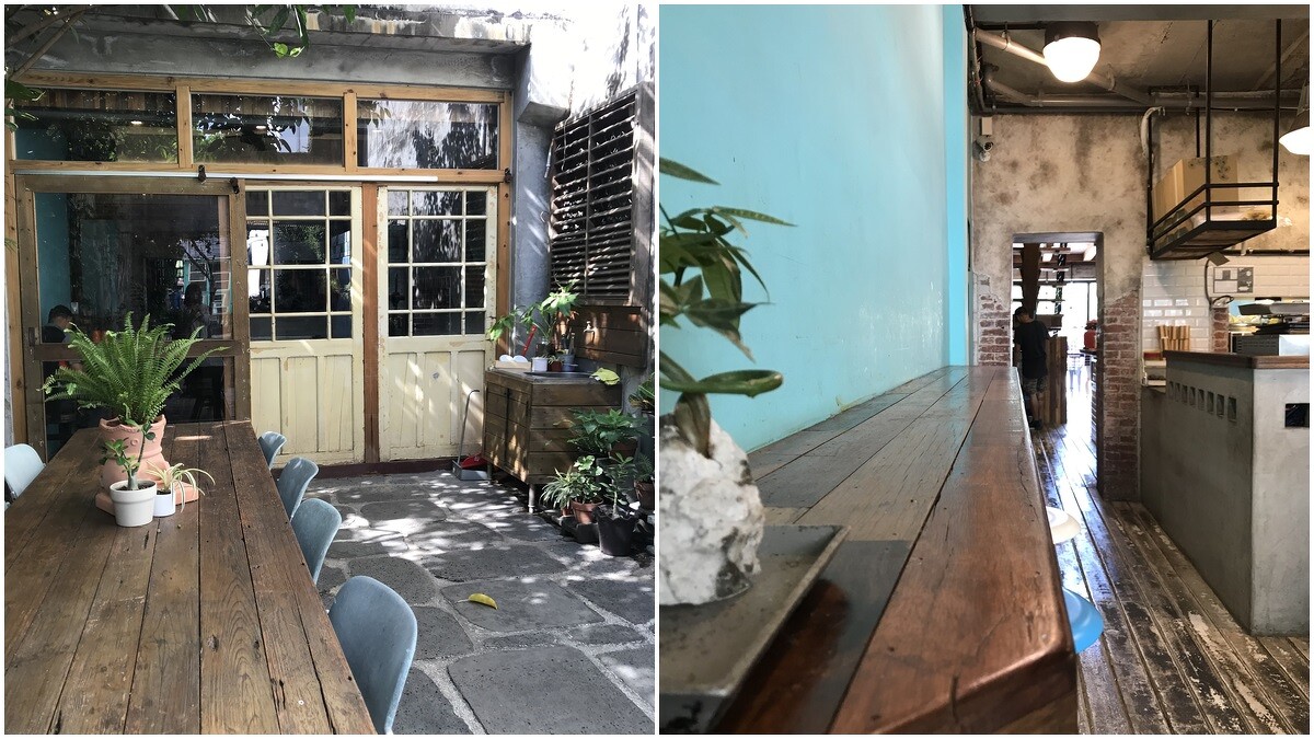西洋式建築的「湯匙放口袋」,走進店內也充滿古色古香的氛圍,一共2層樓的設計,經過櫃檯往裡面走,居然還有寬廣的戶外庭院,在這裡絕對能拍超多張美照。二樓則是樓中樓的設計,還有小小的露台可以容納更多客人。