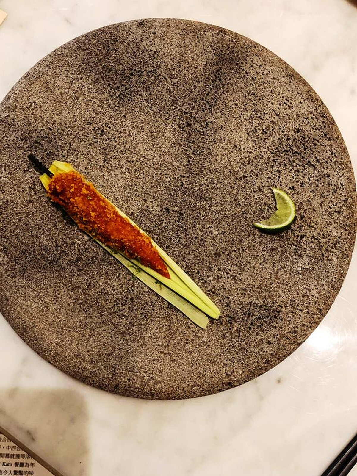「LA的飲食喜好勝敗就在第一口的衝擊力…融合墨西哥泰國四川等鹹酸辣的層次味道,則是代表著LA的飲食印象」美籍台裔主廚年僅27歲,在洛杉磯名廚Ari Taymor的Alma餐廳、舊金山米其林三星Benu與名廚Corey Lee旗下法式小酒館Monsieur Benjamin餐廳、以及米其林三星的Coi餐廳歷練。姚成駿Jonathan Yao 2016年於洛杉磯開設餐廳-Kato,靈感來自青蜂俠的助手加藤,並且於2018年美國《美食與美酒Food & Wine雜誌》最佳新銳主廚以及《富比世Forbes雜誌》30 under 30年輕領袖獎。這次的餐盤珍饈果然嘗得到LA多樣讓人無法預期的味蕾驚喜,值得一嘗。