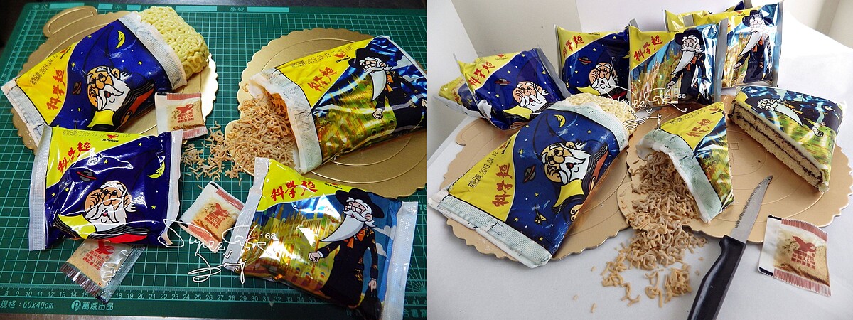 麥香紅茶切開變蛋糕,科學麵切開會是?如果翻玩有那麼簡單就不叫翻玩啦!科學麵這次邀請了蛋糕達人:@聰抓秉po蛋糕、@常秉賢,一起來開心玩耍~把今年聖誕節限量包裝變成蛋糕啦!就連蛋糕達人也說:「新包裝呈現的光澤感難度破表,能做出真假難辨的科學麵,也是目前蛋糕師傅生涯中的高難度挑戰!」偶某偶某~袋口的那些碎麵,難不成也是?!(嚇到吃手手)