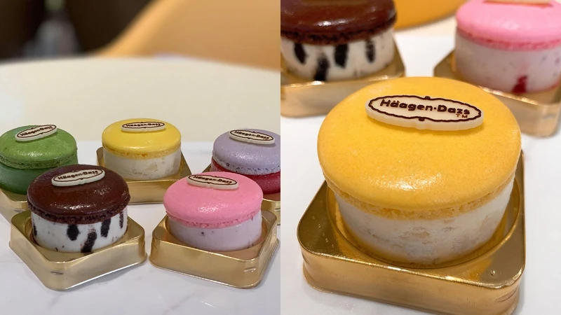 首度登場的馬卡龍冰淇淋禮盒,以綿密的外層餅皮結合濃郁順口的冰淇淋夾心,共有5款口味,包含抹茶馬卡龍、可可馬卡龍、淺紫馬卡龍、檸檬黃馬卡龍以及粉桃馬卡龍,光是外型就超繽紛,咬下去外酥內軟的口感,加上冰淇淋融化在口中,完全就是超幸福的滋味。