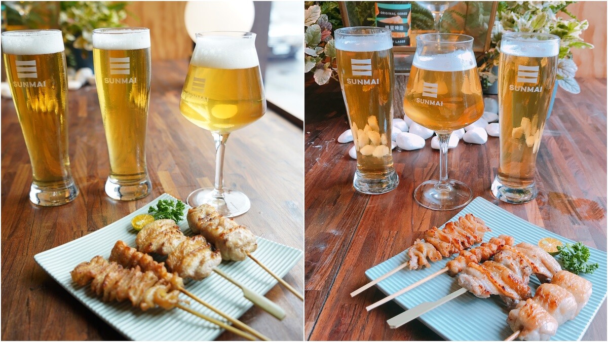 除了單點的選擇,SUNMAI BAR也在晚餐時段推出「酒食串燒雙人嚐鮮組」,分別是濃味啤酒、清爽啤酒2種選擇,能各自搭配酒食串,與朋友一同享受悠閒的夜晚。
