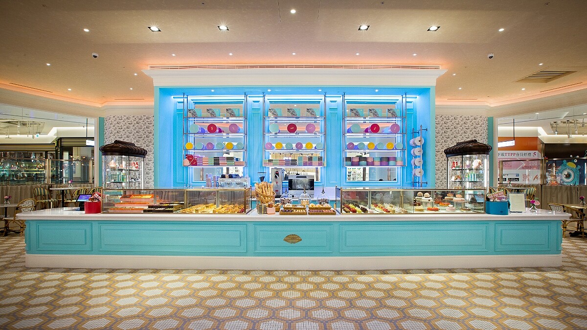 高貴不貴的文華餅房精緻又美味的烘焙糕點,一直是編的心頭好,聽到最近要開全新館外烘焙房,真的是嘉惠內湖區居民啊!地點就位在捷運劍南站附近,美麗華後方的ATT 4 Recharge一樓。不用擔心不好找,位置就在醒目核心位置的文華餅房,占地近70坪、挑高4米的開闊空間內,區分為前、後兩區,前為內用區、後則為外帶區;這兩區的裝潢用色皆十足繽紛、引領潮流。最吸睛的是內用區充滿現代感的整面蒂芬妮藍 (Tiffany Blue) 陳列櫃,結合玻璃蛋糕展示櫃,展出了多款美輪美奐的精緻糕點。