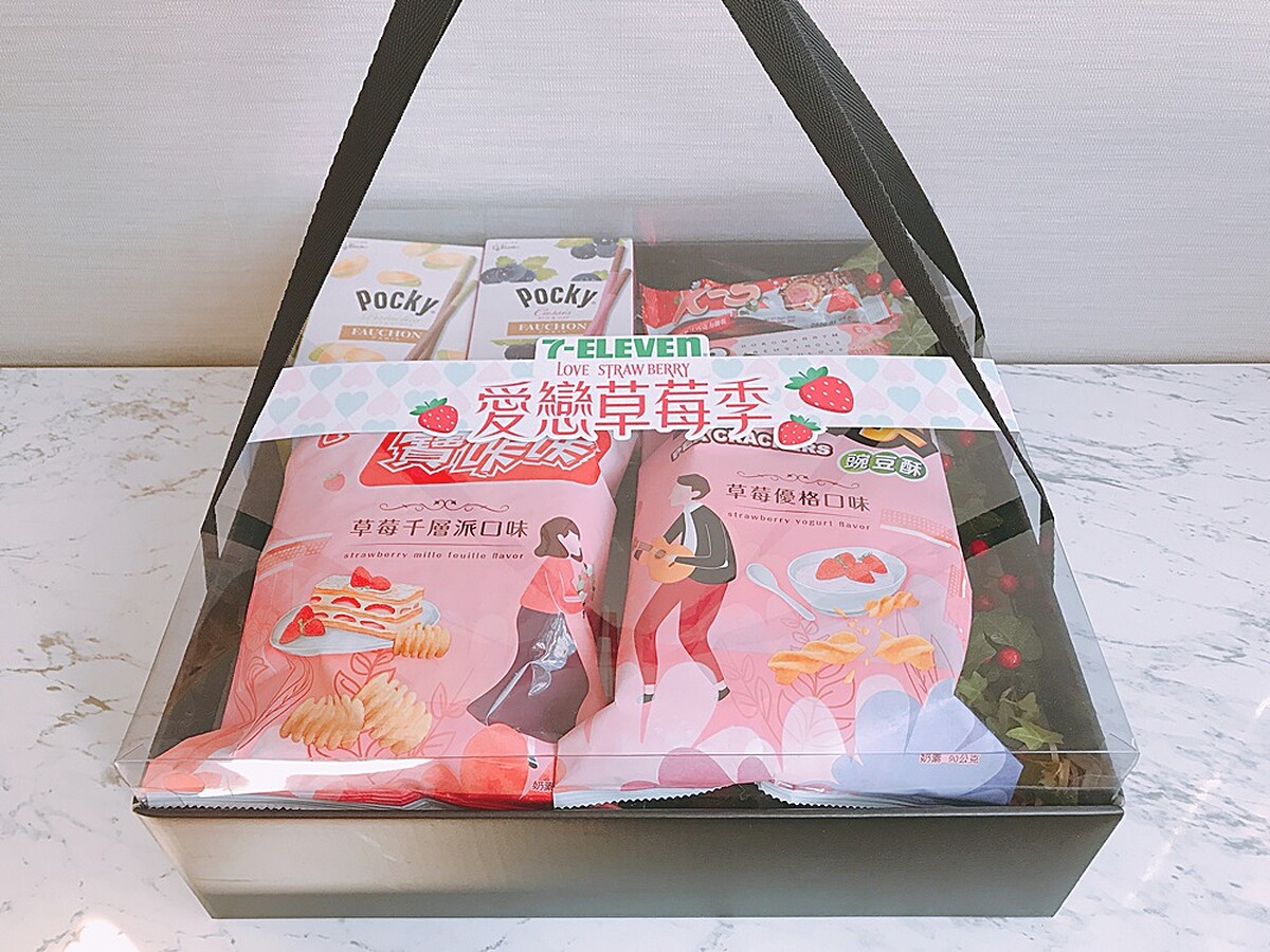 愛戀草莓季精選超過40種商品,包含飲料、糖果、餅乾、冰品等,除了能吃到酸甜草莓口味外,在包裝上也因應情人節換上粉紅色調,還有情人互動的包裝設計,非常應景甜蜜節日的到來。