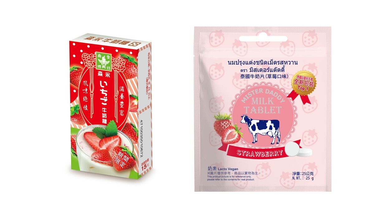除了草莓熱狗外,還有77濃厚系草莓乳加、草莓牛奶糖、泰國皇家牛奶片(草莓)等充滿童年回憶的零食。