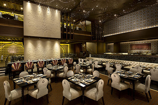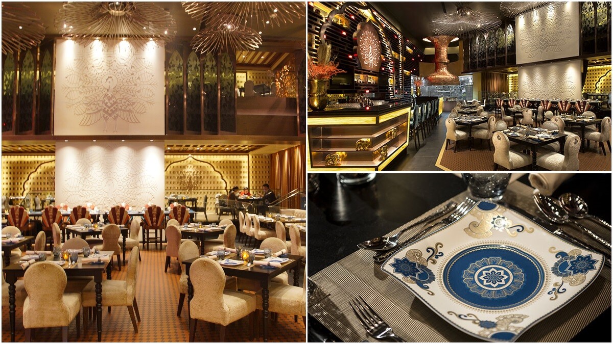 從餐廳入口就能察覺到異國元素充斥整個餐廳,挑高樓中樓的空間、印度國鳥孔雀圖騰,全都用在餐廳的裝飾上,就連頭上的燈飾也呼應孔雀圖案,想必跟印度早期的孔雀王朝有極大的關係。餐廳內最受注目的金銅製印度坦都里爐,更讓人彷彿進到宮殿用餐的氛圍。