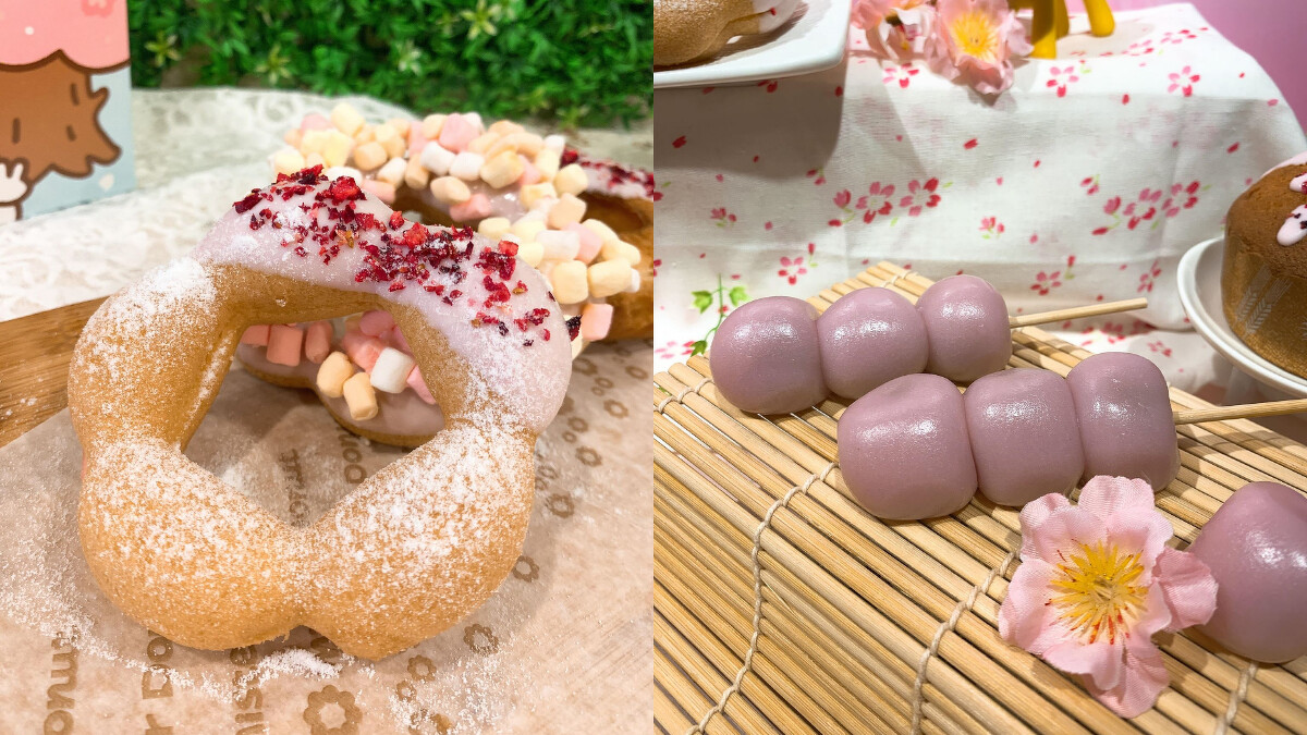 這次Mister Donut特別運用真實櫻花原料與精緻甜點設計手法於甜甜圈中,特別從日本進口以櫻花葉製成的櫻花巧克力,在花形波堤先沾附櫻花巧克力醬,再各別撒上微酸的蔓越莓果乾、輕柔如雪般的棉花糖,共有8款春日限定甜甜圈,還有一款春漾櫻糰子,在粉色糰子中包有櫻花葉餡,吃起來相當Q彈, 也是本季必嚐甜點。