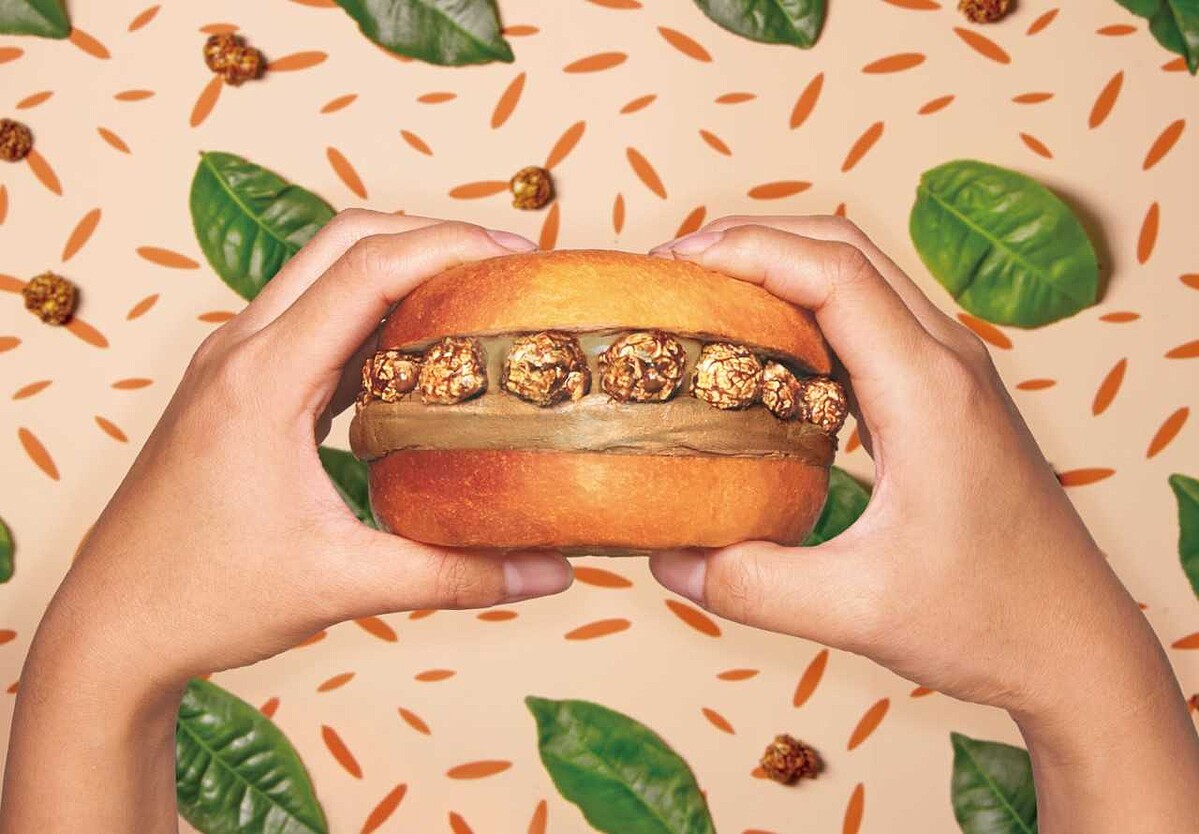 特別迎接春季到來,好丘主廚這回特別研發新款「紅玉爆米花」厚醬貝果,選用來自花蓮的知名茶商「舞間茶心」的紅玉茶葉,打造出特製紅玉鮮奶茶抹醬,在外層裹上太妃糖漿與低溫研磨的有機紅玉茶粉,濃郁的茶香搭配焦糖,帶有迷人的甜香氣。