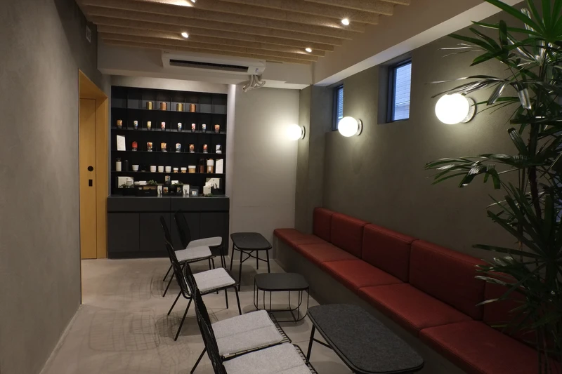結合日式與當代風格,極簡的當代視覺設計茶室,看似語彙多樣,但到底說的還是茶。選茶來自中日印尼泊爾,以酒標規格製作茶標以期 Globalized tea but localized taste。