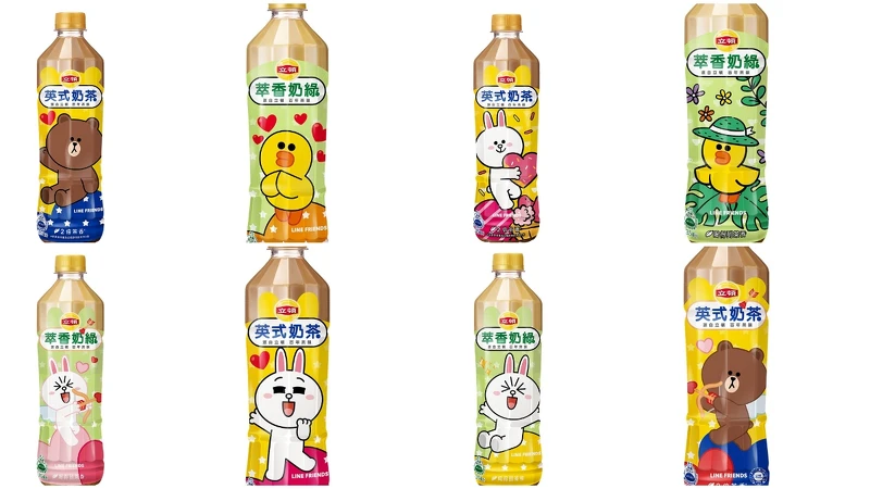 立頓推出LINE FRIENDS聯名午茶限量瓶,包含兔兔四款、熊大和莎莉各兩款造型包裝。一次八款隨機出貨,口味則以英式奶茶以及萃香奶綠為主。兩款寶特瓶都以茶香奶濃的滑順口感為特色:萃香奶綠,奶香濃郁烘托綠茶柔和;英式奶茶融入兩倍英式紅茶茶量,打造濃而不膩英式奶茶。