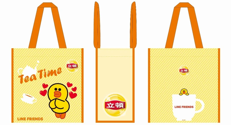4/24在家樂福,買任兩組立頓寶特瓶奶茶,可獲得LINE FRIENDS午茶派對熊大提袋一個。
