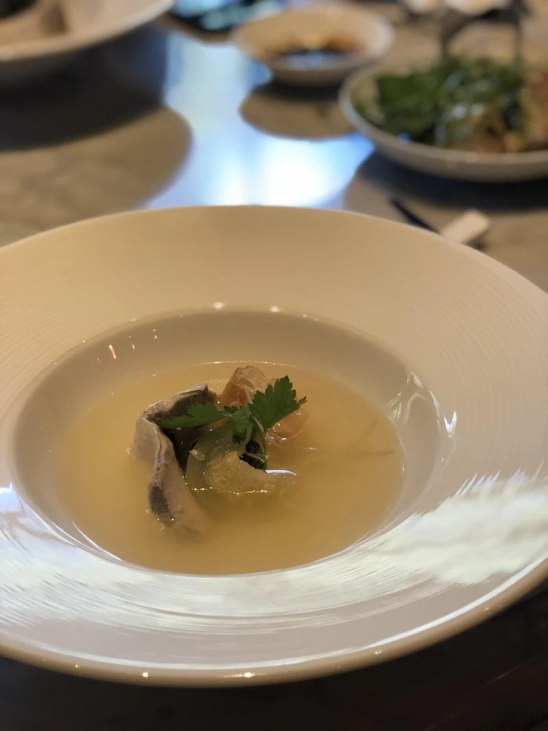 主廚最推台南獨家風味潺綿虱目魚湯,百中選一的虱目魚,用台南海口人家的家常美味西瓜綿,手工手打魚丸,台式醃漬的甘甜入湯,湯韻鮮鹹美麗。最後甜點也是強棒,阿霞最強的八寶甜品搭配台南人氣甜品店蜷尾家「杏福圓滿冰沙甜湯」吃得到冬瓜糖提煉的冰沙入裏,吃出懷念又道地的古早冰好味。