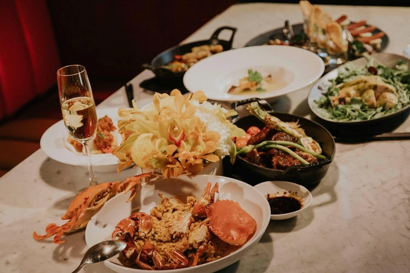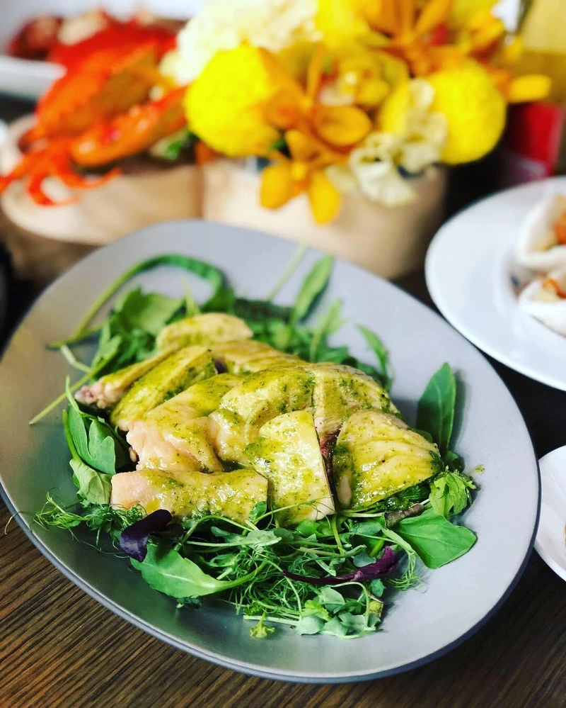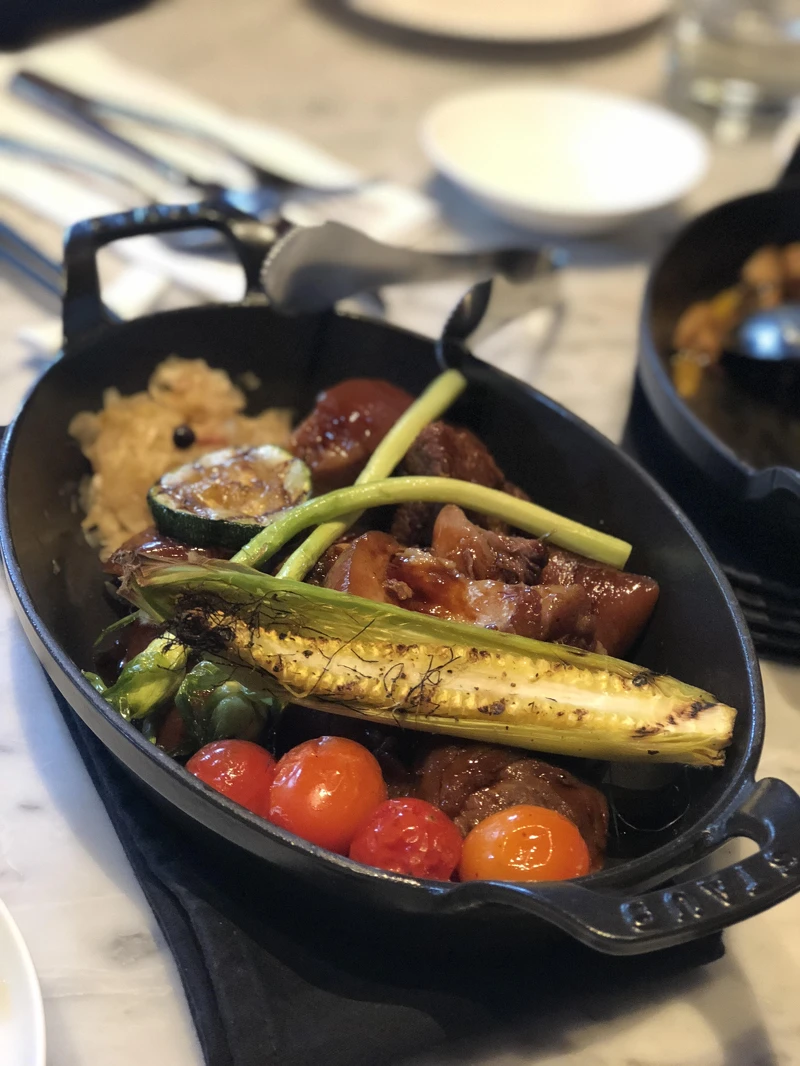 喜宴一定要出場的白斬雞改用義式青醬也很和諧,還可以沾義式巴薩米克醋特製沾醬;阿霞招牌菜紅蟳米糕,改用燉飯料理還混入帕達諾起司,濃醇香呈現紅蟳鮮美;期待多一點義式風味就可以專注「炸蝦珠寶盒」,手工義式肉丸子混入配方比例豬牛絞肉,用炸玉晶蝦和蝦餅襯底,最後上面插上一隻炸義大麵有點像是插了蠟燭的生日蛋糕。