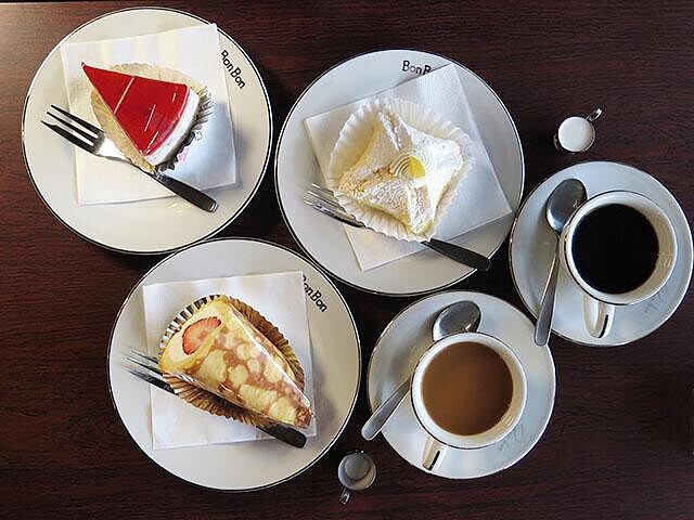 創業於昭和24年,Bonbon是德文中的「糖果」之意,在戰爭期間向德國人學習到製作西點蛋糕的技術,戰爭結束後開始製作、販售甜點,最後開設喫茶店結合蛋糕銷售,在以吐司為主的喫茶店中,有了更多的選擇!從此以甜點蛋糕與咖啡的服務屹立不搖70餘年。店內的蛋糕不強調華麗與流行,更是以平價、簡單為主,蛋糕種類的多樣化讓人難以抉擇,每一個都想點來品嚐一番,店內洋溢著老店的復古氣息,恍若進入昭和時代電影場景,甜點控們這間一定要收藏起來!