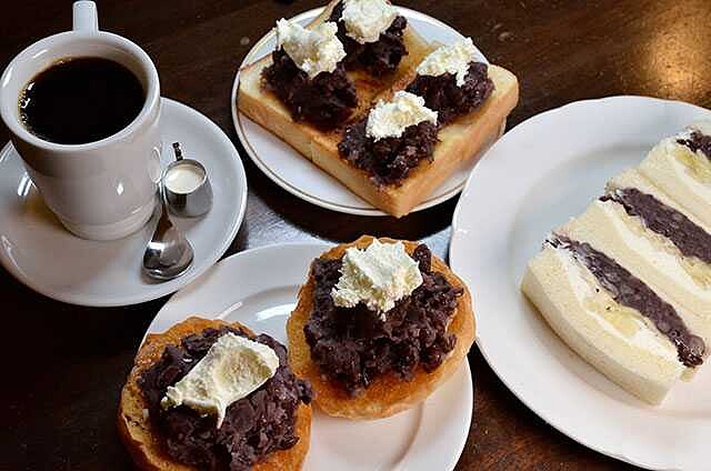 從店的外觀難以聯想到這是一間喫茶店,強烈的普普風格乍看之下還以為是間美式酒吧,直到打開菜單才發現全天提供經典的小倉紅豆吐司,且用大壺法絨布沖煮出自家煎焙咖啡,讓這間復古咖啡廳更增添了異國風味,店內還提供小倉紅豆圓麵包,讓小倉紅豆的愛好者可以感受更多種類的搭配。小圓麵包抹上奶油,與紅豆鹹甜美味一拍即合,小倉紅豆餡泥為店家自製,顆粒感明顯,一次可以吃到兩種的紅豆搭配,豐富的口感滋味,紅豆控們來去朝聖囉~