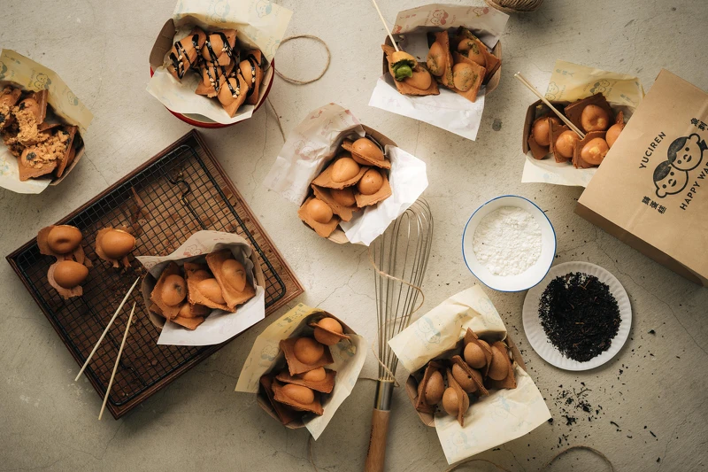 「YUCIREN魚刺人雞蛋糕」使用蔗糖、契作小農無毒雞蛋、台南鮮醇濃厚的禾香牛奶,搭配親自研發的麵粉配方,烘烤出濃濃奶香,口感扎實香甜,並推出來自家鄉的魚池紅玉紅茶與一系列茶韻十足飲品。創意口味更讓人好驚喜,包括 :肉鬆卡斯達、香蕉巧克力、靜岡抹茶、阿薩姆卡斯達、乳酪起司、苦甜巧克力等含撒料跟淋醬,希望能帶給消費者更多新體驗。