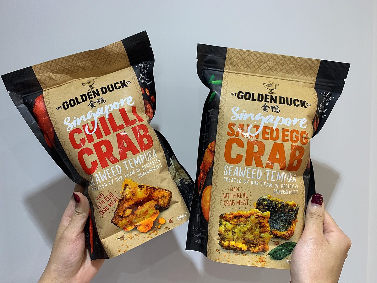 兩款口味都是以新加坡正宗美食辣椒蟹為靈感,使用真正的蟹肉製作, 「鹹蛋黃蟹天婦羅紫菜」是將香濃鹹蛋黃和蟹肉結合,再加上炸得香脆的紫菜解膩,而「辣椒蟹天婦羅紫菜」則運用蟹肉、咖哩葉、辣椒等多種原材製作,微辣的香氣增添層次,非常適合當作下酒菜,肯定又會掀起一波團購熱。
