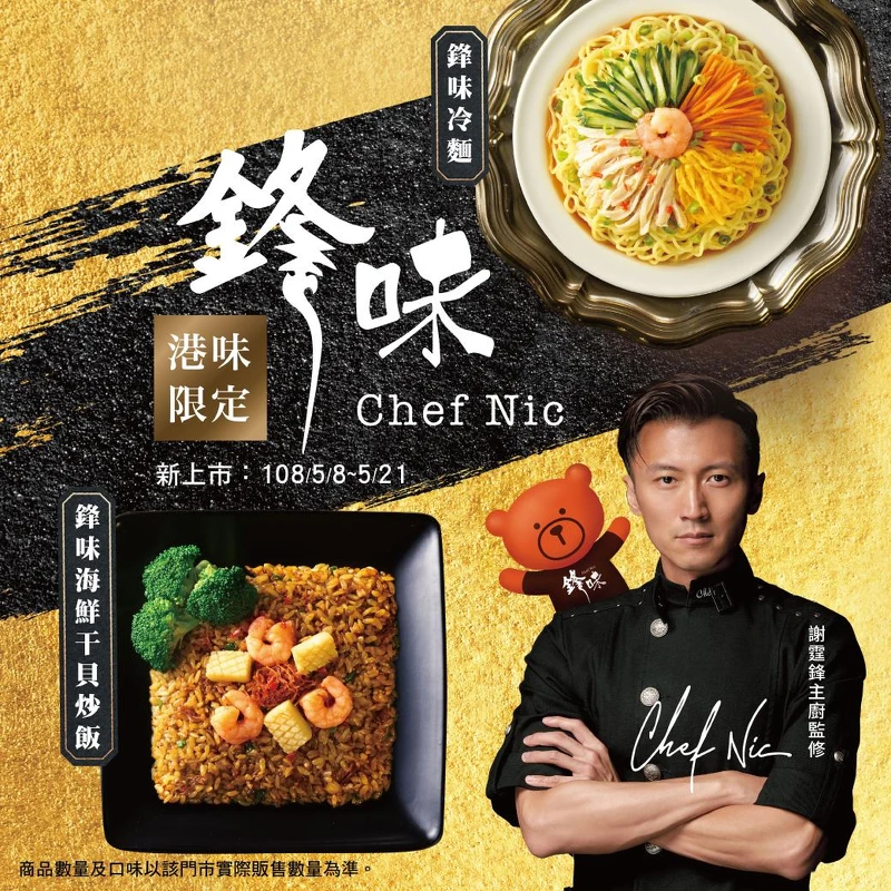 喜歡謝霆鋒Chef Nic《12道鋒味》的粉絲有福啦!除了品嘗鋒味拌麵過過癮之外,這次吃的到謝霆鋒全程監製開發的鮮食料理啦!也是7-ELEVEN首度與星廚謝霆鋒的自創品牌「鋒味」合作。第一波推出「鋒味冷麵」與「鋒味海鮮干貝炒飯」,期望帶給大家酸、甜、苦、辣不同的味蕾享受。