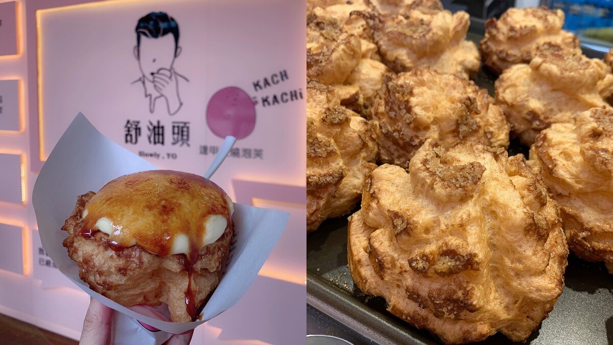 台中逢甲夜市排隊名店「火焰炙燒KACHI泡芙」這回首度和時尚茶飲「舒油頭Slowly,Yo。」跨界聯名,「火焰炙燒KACHI泡芙」的泡芙當日現烤現做,擠上會爆漿的餡料,上頭的白糖再經過炙燒,入口之後吃得到碳烤微甜的香氣,完全就是甜點女孩的夢幻美食,配上一杯充滿撩妹金句的「舒油頭Slowly,Yo。」茶飲,就是只有「搭」一個字可以形容,也別忘了在粉紅牆面拍美照哦!