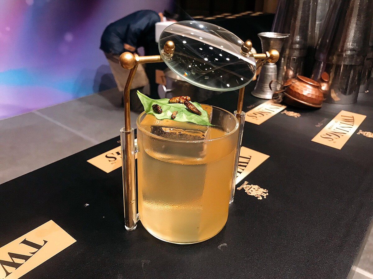 Luca Cinalli大師靈感來自非常古老的茶種-大吉嶺紅茶,Twinings大吉嶺莊園雙芬茶中獨一無二的香氣加上蘆薈增添一絲苦味,並透過可可油增添奶香與柔和。葡萄柚汁更是這杯的靈魂角色,微酸的滋味平衡了口中與舌尖上的味覺!對於外觀十分重視的Luca Cinalli還特製了放大鏡杯器展現新鮮茶葉的細緻紋路與構造,更能透過放大鏡細細觀察生物之美,據說蟋蟀乾還是BBQ口味!
