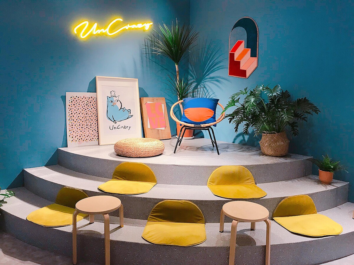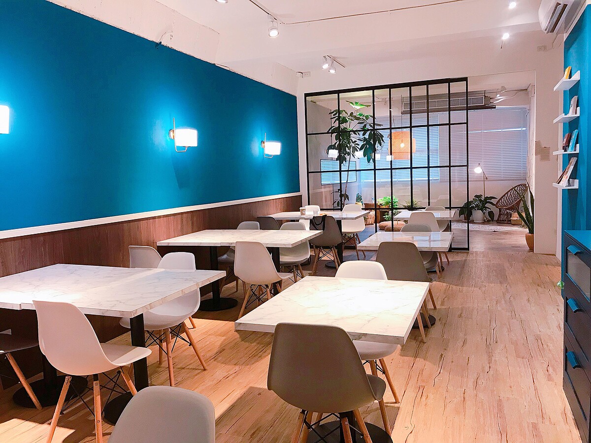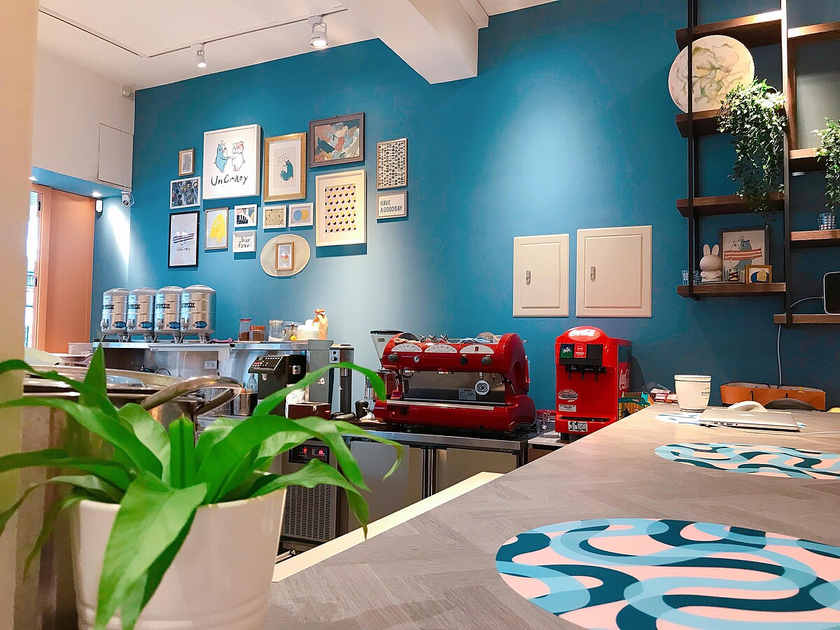 這裡是網美必拍景點之一,藍色的牆面看起來超級俏皮可愛!但其時它也是一個小舞台,之後也會邀請人來演唱,以及會配合一些展覽,將這裏勿瘋打造成複合式的餐廳!