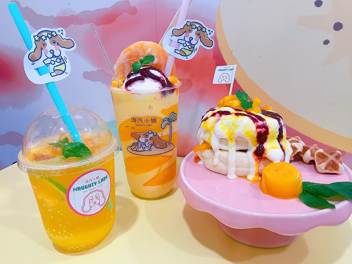 店名來自可愛的店狗lady,從Logo、壁畫、各種小擺設,連裝潢風格也以lady為主!粉嫩感十分可愛,店家還製作各種手牌讓網美們可以好好拍得夠!淘汽小姐原先是以氣泡飲為主,後來以美妝產品發想,以新鮮水果、果露製作希望店面及飲品都是色彩繽紛帶給顧客好心情!