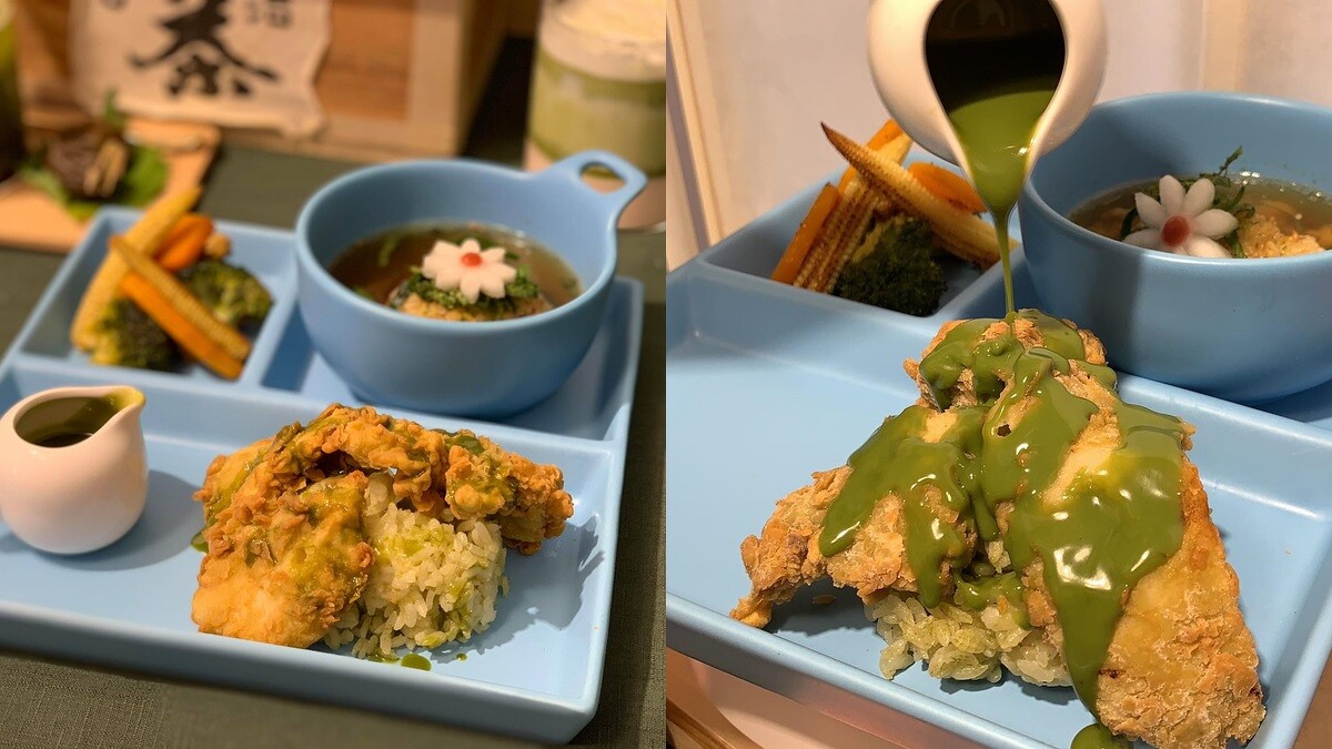 另外喜歡輕食鹹點的,可以選擇「抹茶白醬唐揚定食」,運用北海道奶油白醬及辻利抹茶調配出獨家抹茶白醬,搭配以鮮奶醃製而成的薄皮唐揚雞塊及抹茶茶香飯,並附有昆布柴魚抹茶茶泡飯,甜鹹交織營造出驚喜口感。