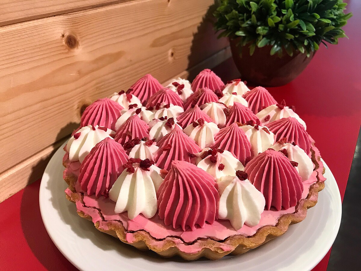 光聽名子就充滿少女心!最底部的手工派塔,以嚴選日本麵粉與法國無鹽發酵奶油細心捏製,厚實酥脆,暗藏酥菠蘿增添咀嚼口感,與泡芙蛋糕、覆盆莓奶霜、卡士達交疊著多層次迷人滋味。上層以Ruby巧克力甘納許揉合北海道奶霜,清拂一抹微酸、微甜的莓果質調,完全顛覆巧克力的想像,最上頭撒上草莓碎粒,粉色爛漫指數爆棚!