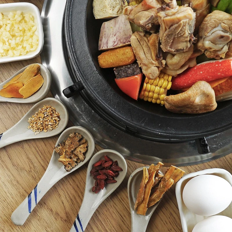 選用西班牙國寶伊比利厚切豬肋條,再以大火爆香,打造與傳統火鍋截然不同的食感體驗,過程中可以品嚐到豬肋條從軟嫩到Q彈的豐富口感變化。