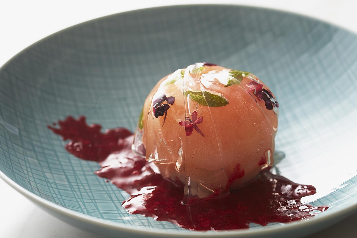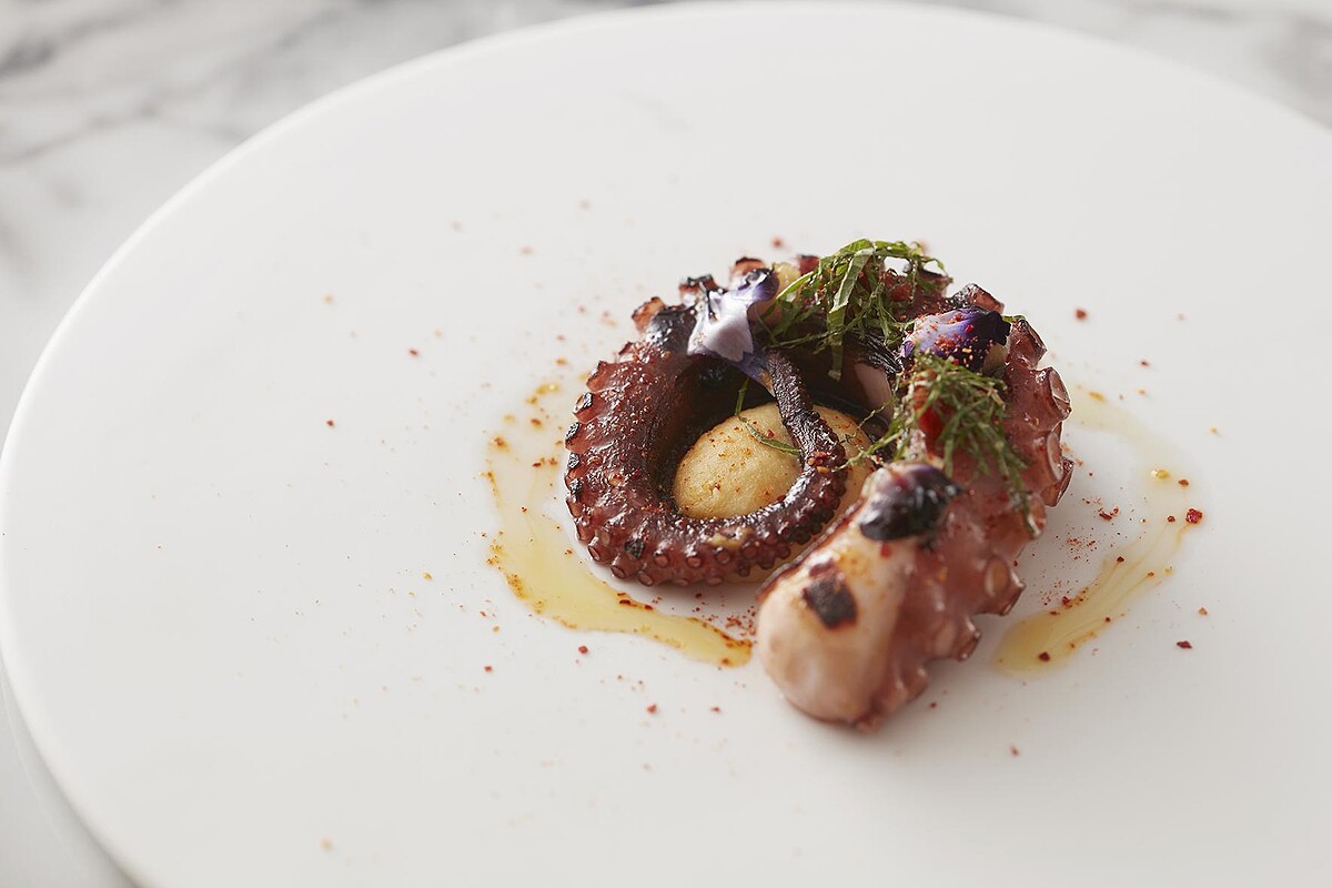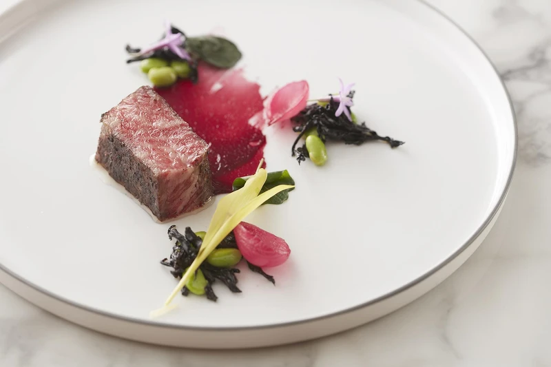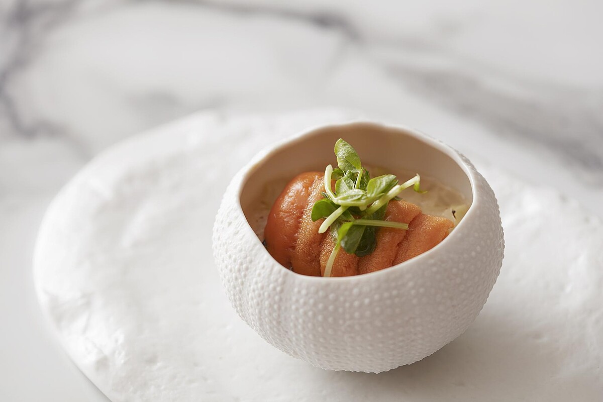 這次Dennis特別為喜來登安東廳設計多款料理,包含猶如魚子醬般閃耀著璀璨光芒的「紅甜菜.帝王蟹.白蘆筍」、「炭烤章魚.鷹嘴豆.西班牙臘腸」、以及他的招牌料理「北海道馬糞海膽.甘藍菜燉飯」,以日本海膽握壽司為發想,將義大利燉飯東西交匯重新詮釋。在甜點上,呼應安東廳經典之最,獻上極為美味的「水蜜桃梅巴爾.東加豆冰淇淋」,為盛宴畫下美好句點。