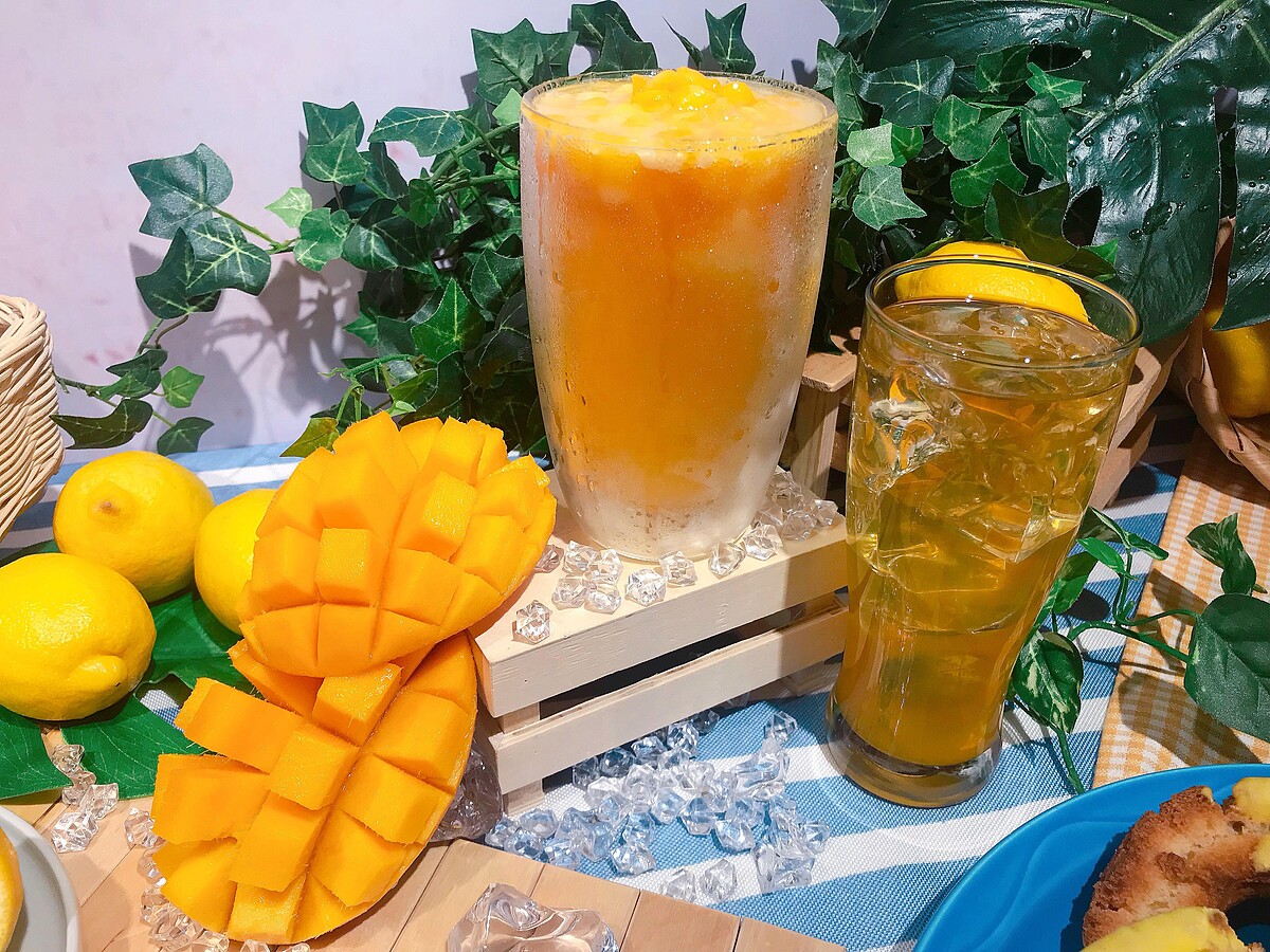 以100%台灣四季春青茶搭配愛文芒果醬製作而成,飲品喝起來帶有芒果的香甜感,但卻不失茶本身的淡雅風味,反而更增添了一番滋味!