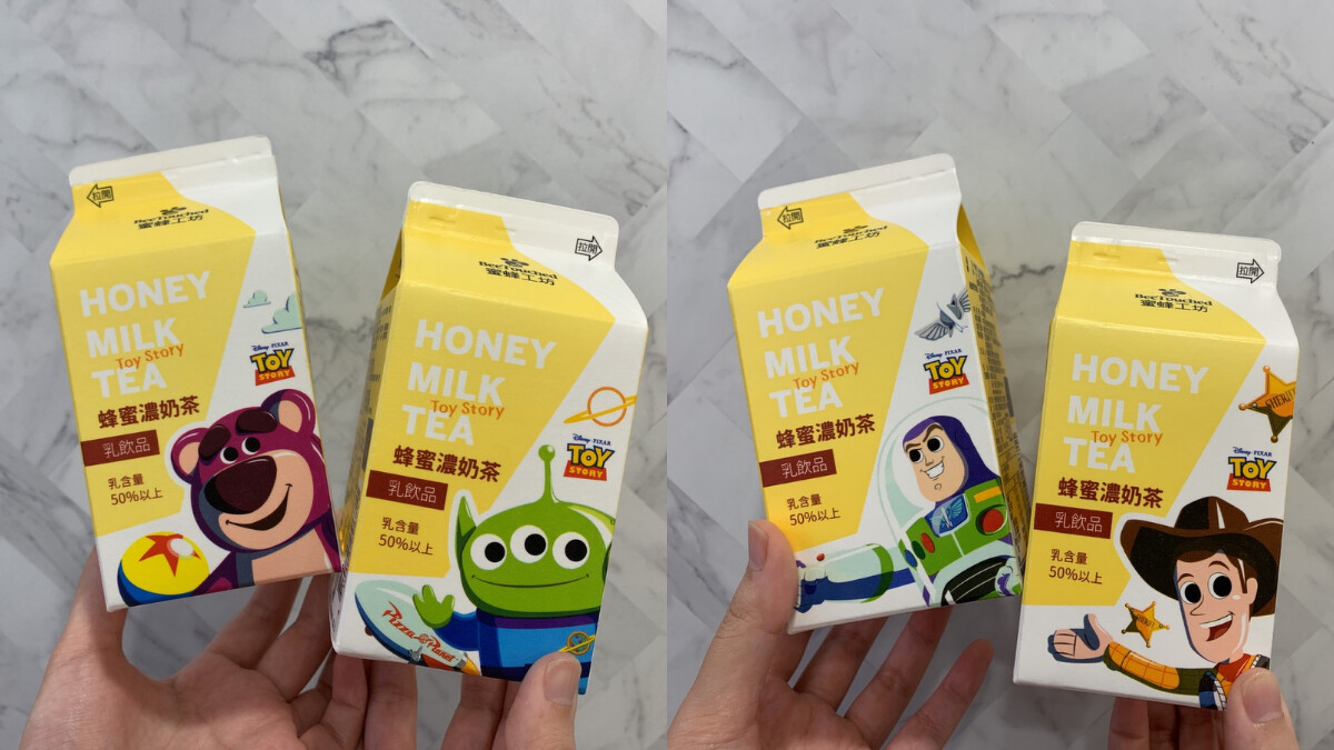 繼上回12款超狂周邊之後,7-ELEVEN第二波《玩具總動員4》聯名再度登場,推出4款外包裝聯名玩具總動員的「蜜蜂工坊-蜂蜜濃奶茶」,不僅將奶茶添加蜂蜜,喝得出超濃蜂蜜滋味外,更首度結合玩具總動員超人氣角色,共有三眼怪、巴斯光年、胡迪,以及熊抱哥,當然要一次喝足。