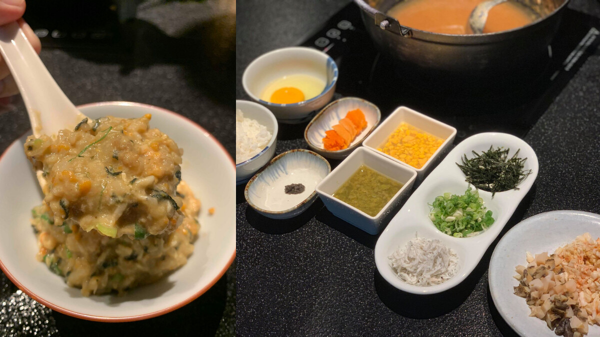 強調不添加人工調味料,竹苑shabu的火鍋湯底是老母雞雞湯,加上蘿蔔、高麗菜、竹蔗、鳳梨、白龍王玉米等8到10種蔬菜熬煮,接著再加入干貝提味,喝過之後不會有口渴感。而這也是讓最後雜炊的美味提升到最高,湯底精華搭上龍蝦、鮑魚、紫海膽、龍蝦膏、蟹膏等匯集成粥,還可以依照個人口味添加黑松露,肯定是最完美的句點。