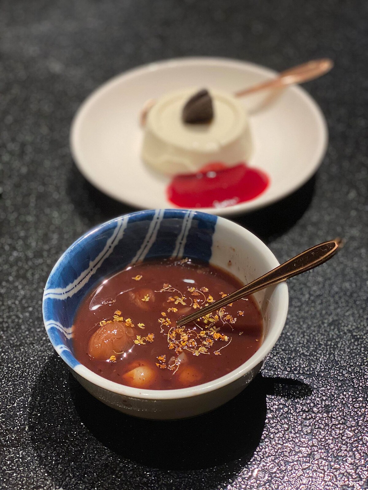 甜點:桂花紅豆湯、香草覆盆莓奶酪