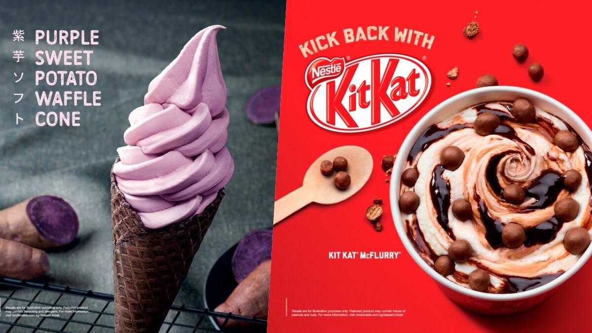 說到麥當勞最吸引人的除了薯條以外,冰炫風也深受大家喜愛!除了經典的OREO口味之外,麥當勞也不定期推出各式限定口味,每次都造成搶購風潮,繼上次介紹韓國麥當勞的「焦糖海鹽冰淇淋」,這次換新加坡麥當勞與Kit Kat聯手推出「KitKat巧克力冰炫風」,還有甜度較低的「紫薯冰淇淋」,這兩款看起來都太好吃了,光看圖片就讓人流口水啦~