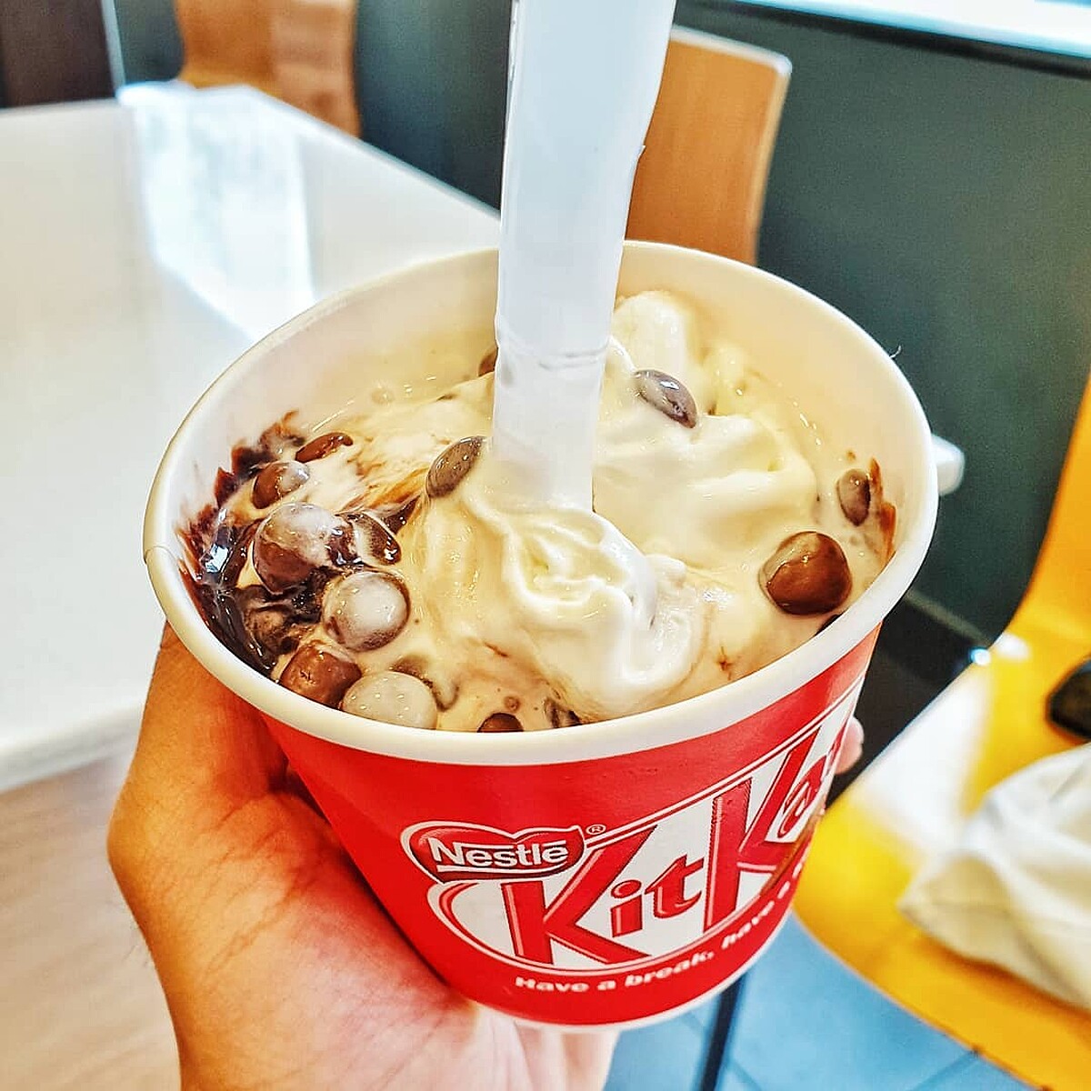 「KitKat巧克力冰炫風」香濃的香草冰淇淋與滿滿的KitKat巧克力碎片搭配,口感豐富有層次,神還原KitKat巧克力風味,絕對螞蟻人的最愛,吃下去的每一口都好享受!