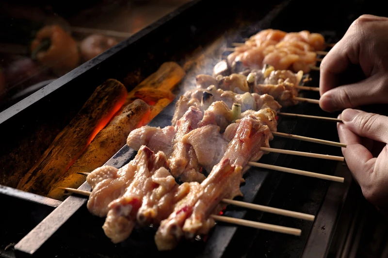 爐端燒是日本一項具有日本傳統飲食文化精神的料理,爐端燒源自於漁民將捕撈漁獲直接使用炭火燒烤,並以船槳遞送料理的傳統文化,「鳥丈爐端燒」克服了百貨店家使用炭火直烤的難度,嚴選高溫且均勻受熱的備長炭來料理烹調,堅持採以“船槳”遞送並以備長炭直烤而成的新鮮烤魚給板前座位的饕客。
