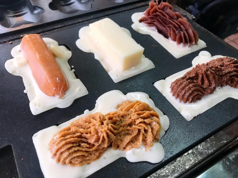 「千千的虎掌燒」就是銅板美食的代表之一,超萌的虎掌外型Q彈立體的小肉球,讓人好想捏一下!外皮的口感外脆內Q,熱騰騰的吃下去厭世感立刻拋到九霄雲外阿~店內目前共有12種口味,除了甜的口味以外,鹹的口味也十分特殊!日式紅豆、榛果巧克力、卡士達、脆皮德腸、酥香花生、馬鈴薯乳酪、馬鈴薯肉醬、莫札瑞拉起司,在6月中更推出了手工芋頭系列-芋泥流沙蛋黃、綿綿芋頭。