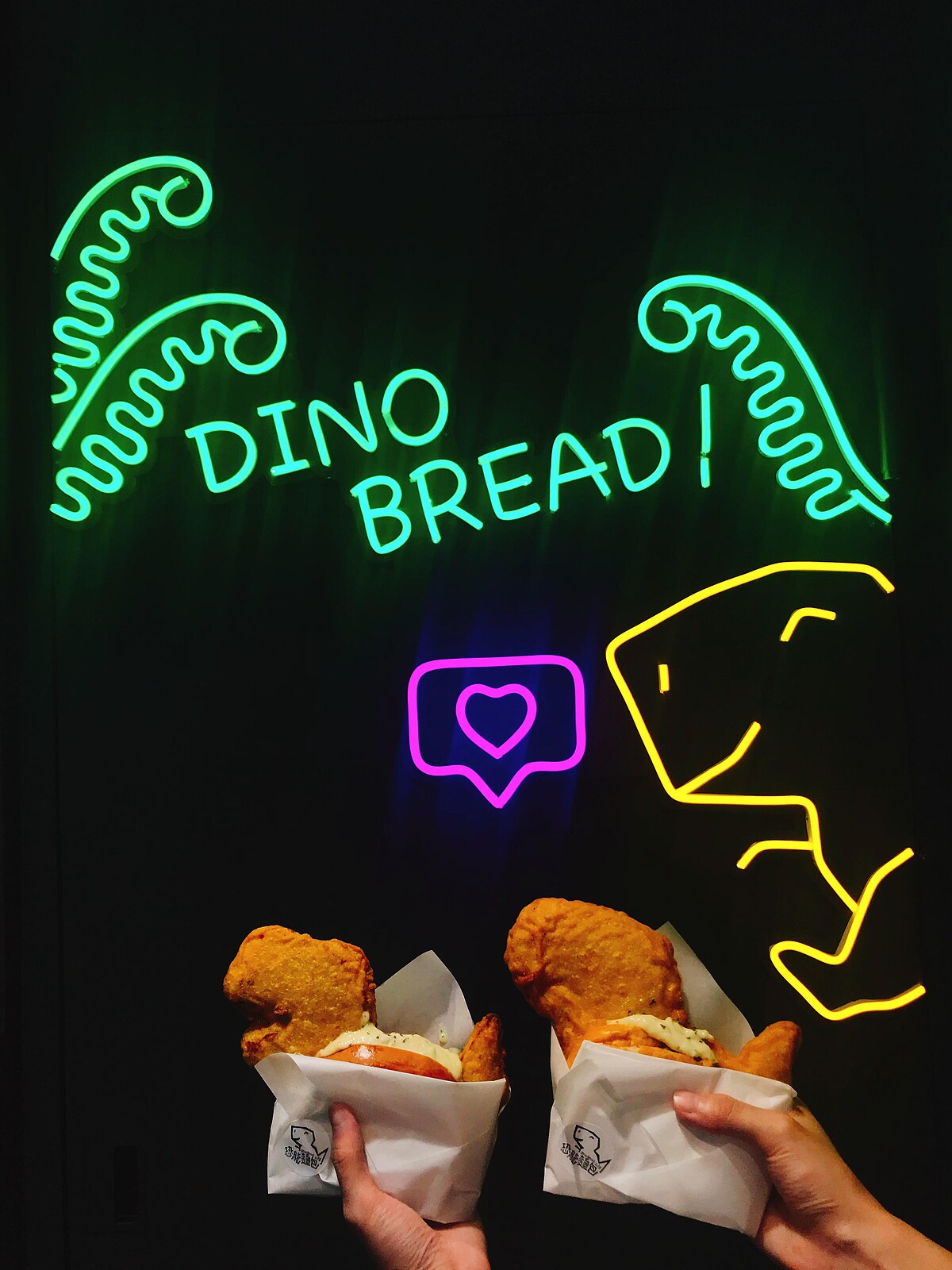 松菸文創園區附近圍繞許多特色文青小店、質感系咖啡廳,走在附近街道上總會有意想不到的美食出現!「恐龍麵包」就是松菸的隱藏版美食,光是店面外觀就十分俏皮可愛,餐點以超巨大的恐龍造型的炸雞塊為賣點,不只造型超萌,口味更是讓人驚喜!