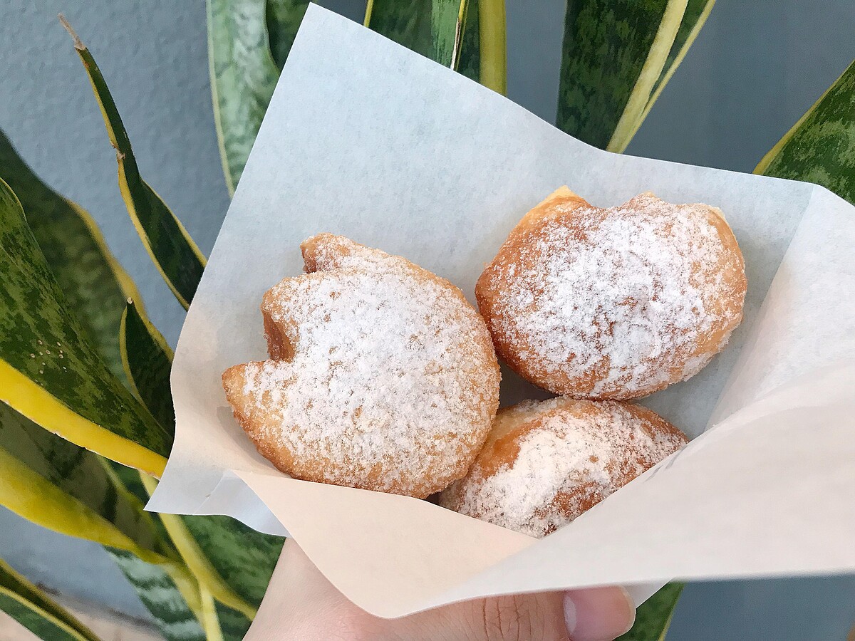 外表以恐龍腳印為造型,再撒上些許的糖粉,整體口感與一般甜甜圈不一樣,較有彈性與嚼勁,喜歡吃甜食的人初訪必點!