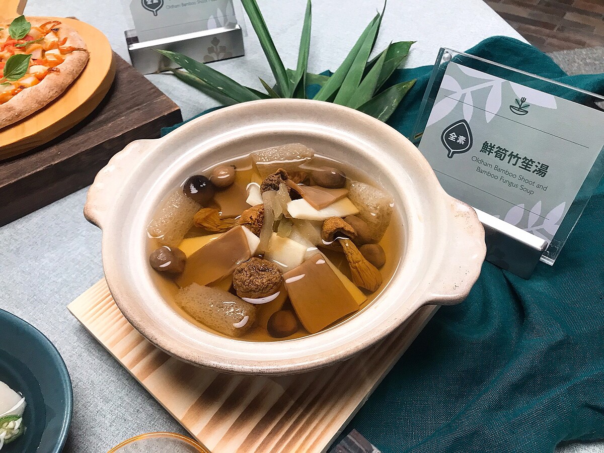 採營養價格極高的巴西蘑菇、蔭瓜等食材焢湯,再加入爽口的綠竹筍,多汁的綠竹筍與調和濃郁的巴西蘑菇香,湯頭清爽而層次豐富。