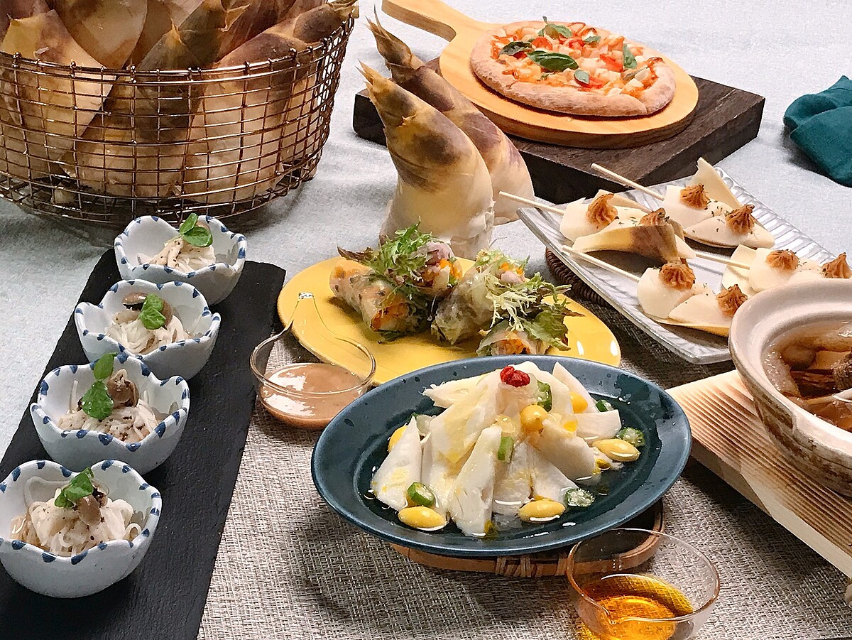 果然匯「以國際料理為舞台、本地食材為主角,匯集豐富蔬果及自然食材,提倡蔬食機能餐飲,用好滋味照顧每位顧客及這塊土地」為品牌理念,積極從產地尋找優良的農產品與食材結合製作出更多創新料理。每年6~9月是新北綠竹筍的盛產季節,綠竹筍有「低熱量、低膽固醇、高纖維」的特性,是新北健康三寶之一!果然匯主廚針對竹筍的特性精心研發多款創意料理,現做的「綠竹筍披薩」、清爽脆口的「越式鮮筍米捲」、酸香開胃的「夏日嫩筍沙拉」、細緻可口的「松露細筍麵」、鮮美清甜的「雪蓮果紅油嫩筍」、以及「綠竹筍田樂燒」「鮮筍竹笙湯」,運用中西日不同的料理手法,讓綠竹筍的特性更加突出,為的是讓饕客們品嘗到當季最新鮮的好滋味。